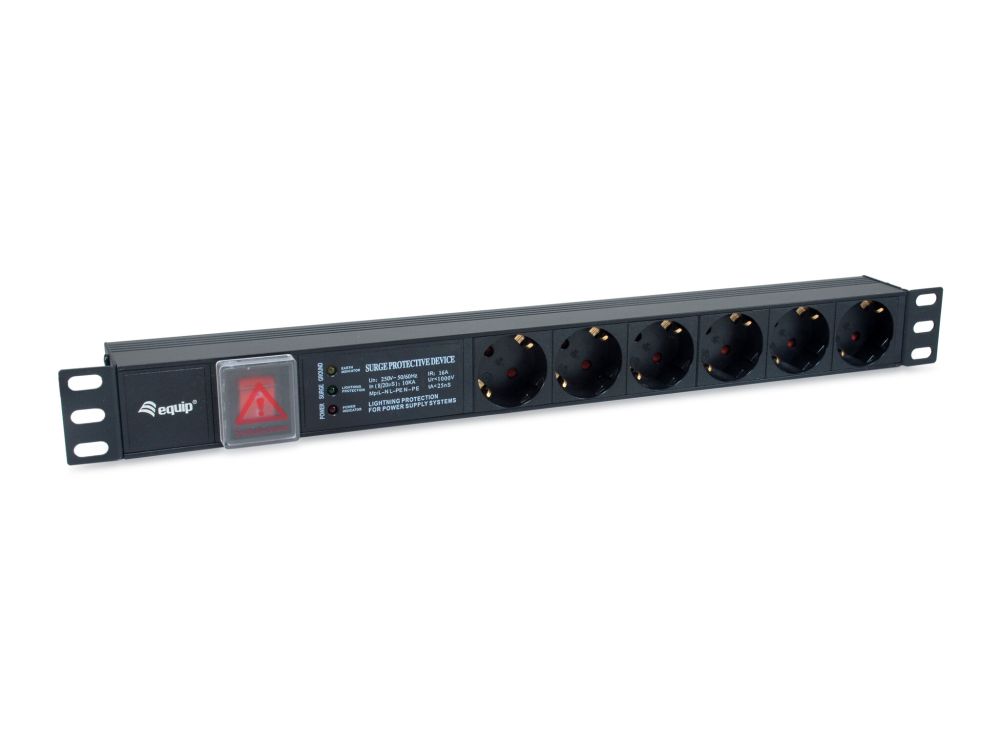 Equip 333317. Capacità di rack: 1U, Materiale della scocca: Alluminio. Quantità prese AC: 6 presa(e) AC, Tipo di uscita AC: Tipo F, Presa di corrente: Tipo F. Lunghezza cavo: 1,8 m. Voltaggio nominale di entrata: 220 - 240 V, Corrente massima: 16 A, Frequenza di ingresso AC: 50/60 Hz. Larghezza: 45 mm, Profondità: 45 mm, Altezza: 482,6 mm