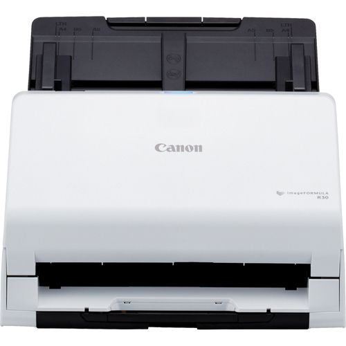 Canon imageFORMULA R30. Massima dimensione di scansione: 216 x 356 mm, Risoluzione di scansione ottica: 600 x 600 DPI. Tipo di scansione: Scanner con ADF + alimentatore di fogli, Colore del prodotto: Bianco. Tipo sensore: CIS, Fonte di luce: LED RGB, Formati file scanner: BMP, JPEG, PDF, PNG, PPTX, TIFF. Massimo formato carta serie ISO A: A4, Scanning media types supported: Scheda plastica, spesso... Mostra tutto