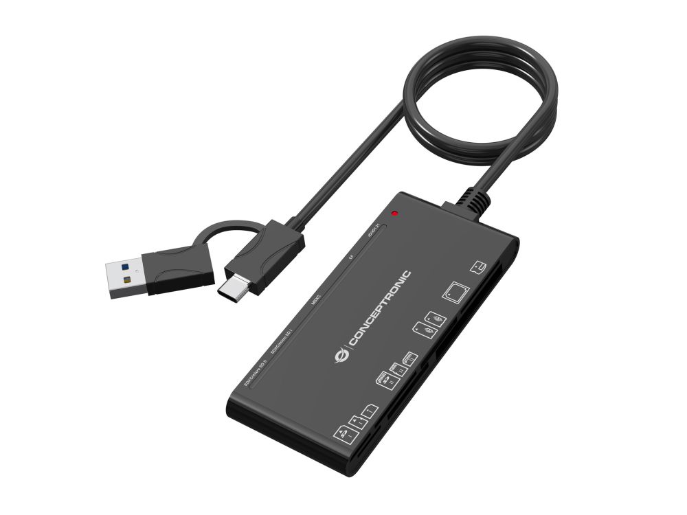 Conceptronic BIAN10B. Tipi schede di memoria: CF, MMC, Memory Stick (MS), MicroSD (TransFlash), MicroSDHC, MicroSDXC, SD, SDHC, SDXC, xD, Colore del prodotto: Nero, Velocità di trasferimento dati: 5000 Mbit/s. Interfaccia: USB 3.2 Gen 1 (3.1 Gen 1) Type-A/Type-C. Larghezza: 46 mm, Profondità: 110 mm, Altezza: 12 mm. Larghezza imballo: 108 mm, Profondità imballo: 173 mm, Altezza imballo: 23 mm. Sis... Mostra tutto